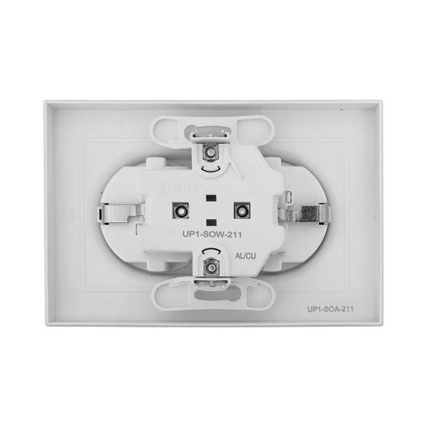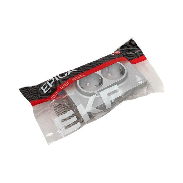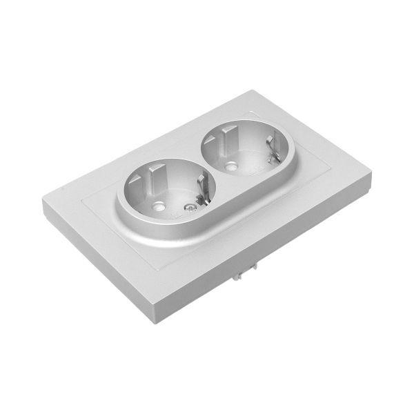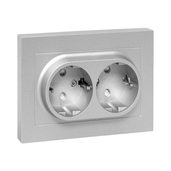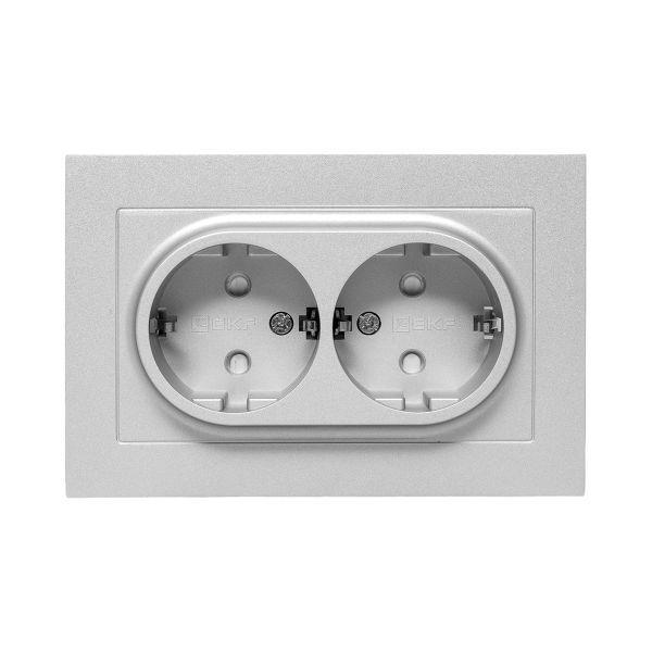 Эпика Механизм розетки двойной 16А с заземлением со шторками с рамкой алюминий, код UP1-SOA-211, производитель EKF