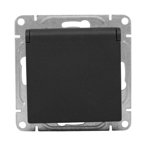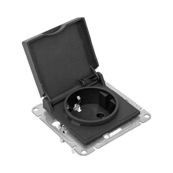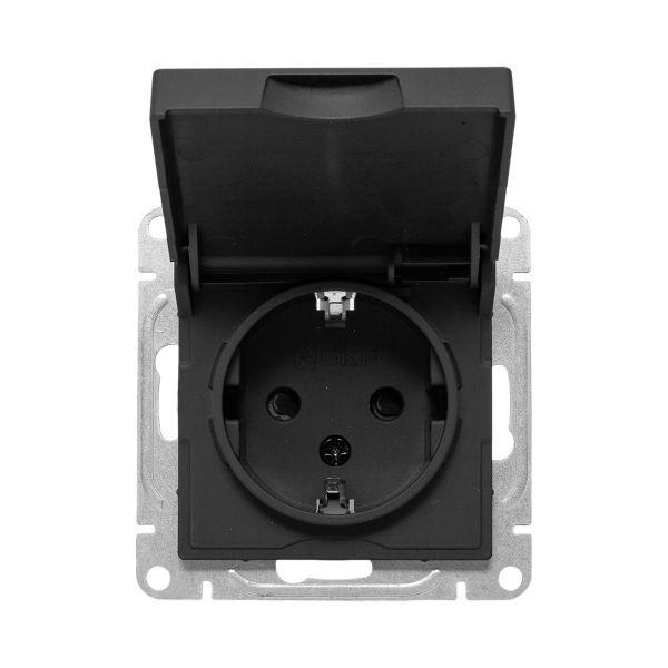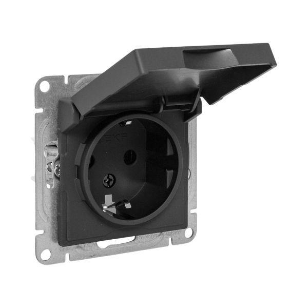 Эпика Механизм розетки 16А IP44 с заземлением со шторками c крышкой черный, код UP1-SOB-111-44, производитель EKF