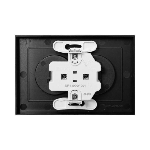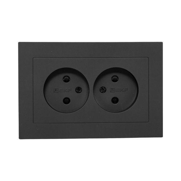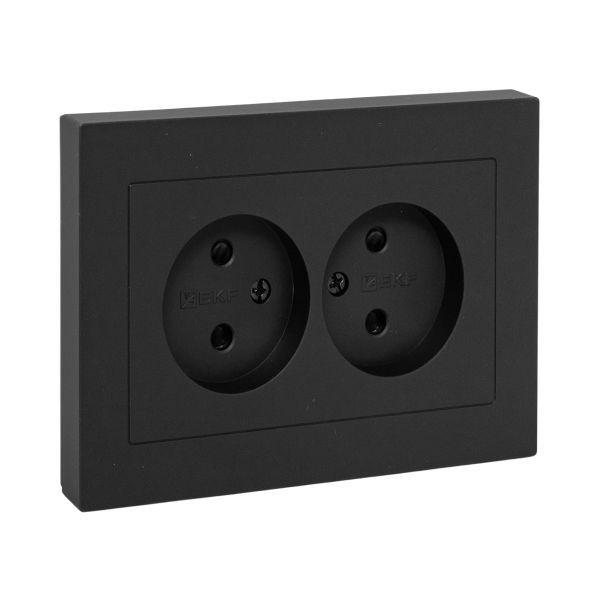 Эпика Механизм розетки двойной 16А без заземления со шторками с рамкой черный, код UP1-SOB-201, производитель EKF