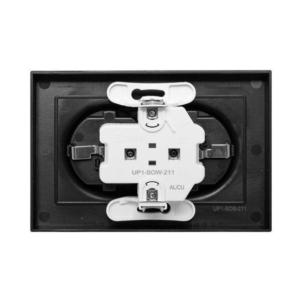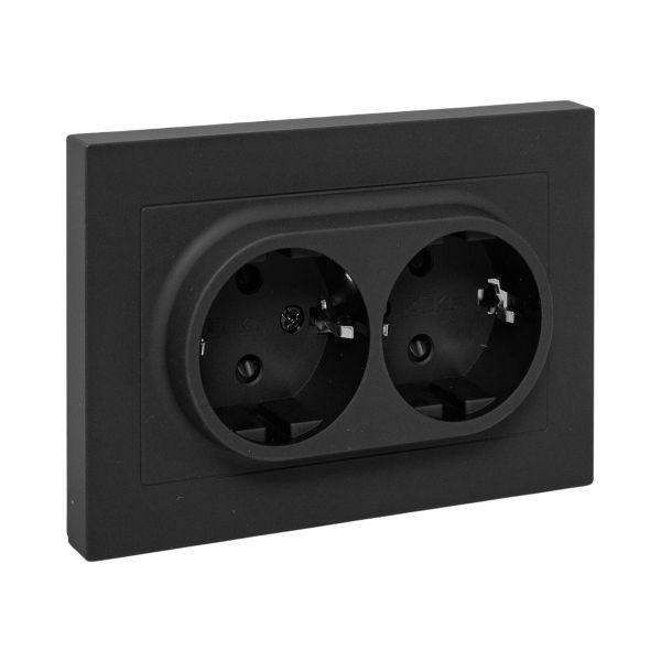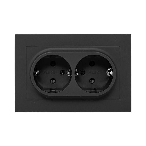 Эпика Механизм розетки двойной 16А с заземлением со шторками с рамкой черный, код UP1-SOB-211, производитель EKF