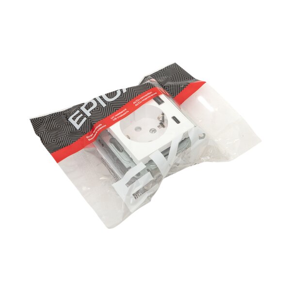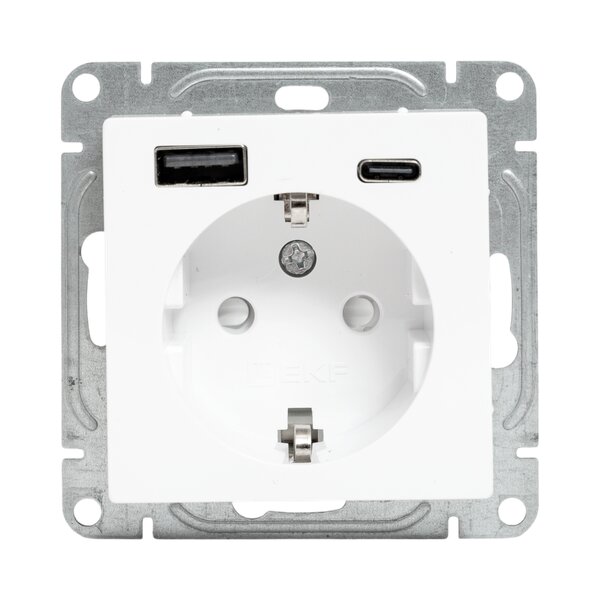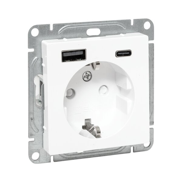 Механизм розетки с USBA+С 2шт, 16А, с заземлением, со шторками, белый Эпика, код UP1-SOW-111-USBA+USBC, производитель EKF