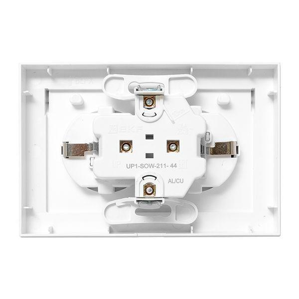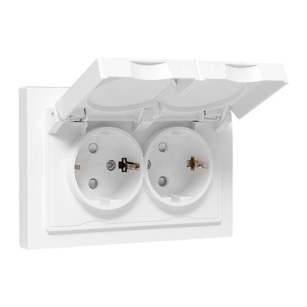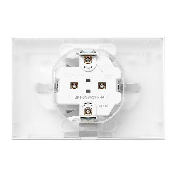 Эпика Механизм розетки двойной 16А IP44 с заземлением со шторками с рамкой с крышками белый, код UP1-SOW-211-44, производитель EKF
